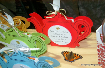 Die Teekannen hauen mich einfach um. Die sind so genial und gefallen mir sehr gut. Auch deine kleinen Schenklis und die Schmetterlingsbilder sind so genial. Ach da wäre ich so gern mal vorbei gekommen. Aber das ist leider doch für einen Ausflug einfach zu weit.